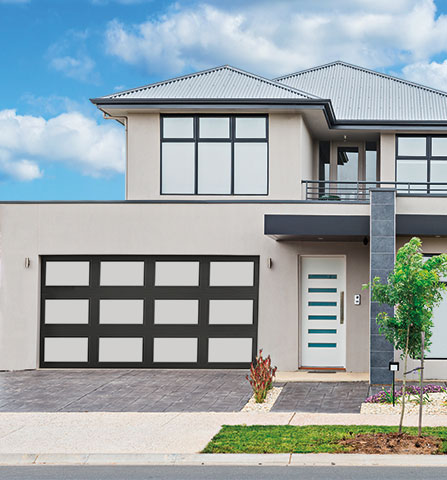 Full View garage door with large windows allow for maximum natural light; Long-lasting, factory finished paint colors (12) including Amarr Color Zone with over 800 Sherwin-Williams colors to choose from; Windows are available in DecraGlass designs (3) or double-strength, obscure, Frost, Dark Tint or insulated glass options for desired visible light transmission (VLT) and design; DecraTrim window inserts (6) for complementary design to your home.